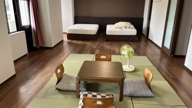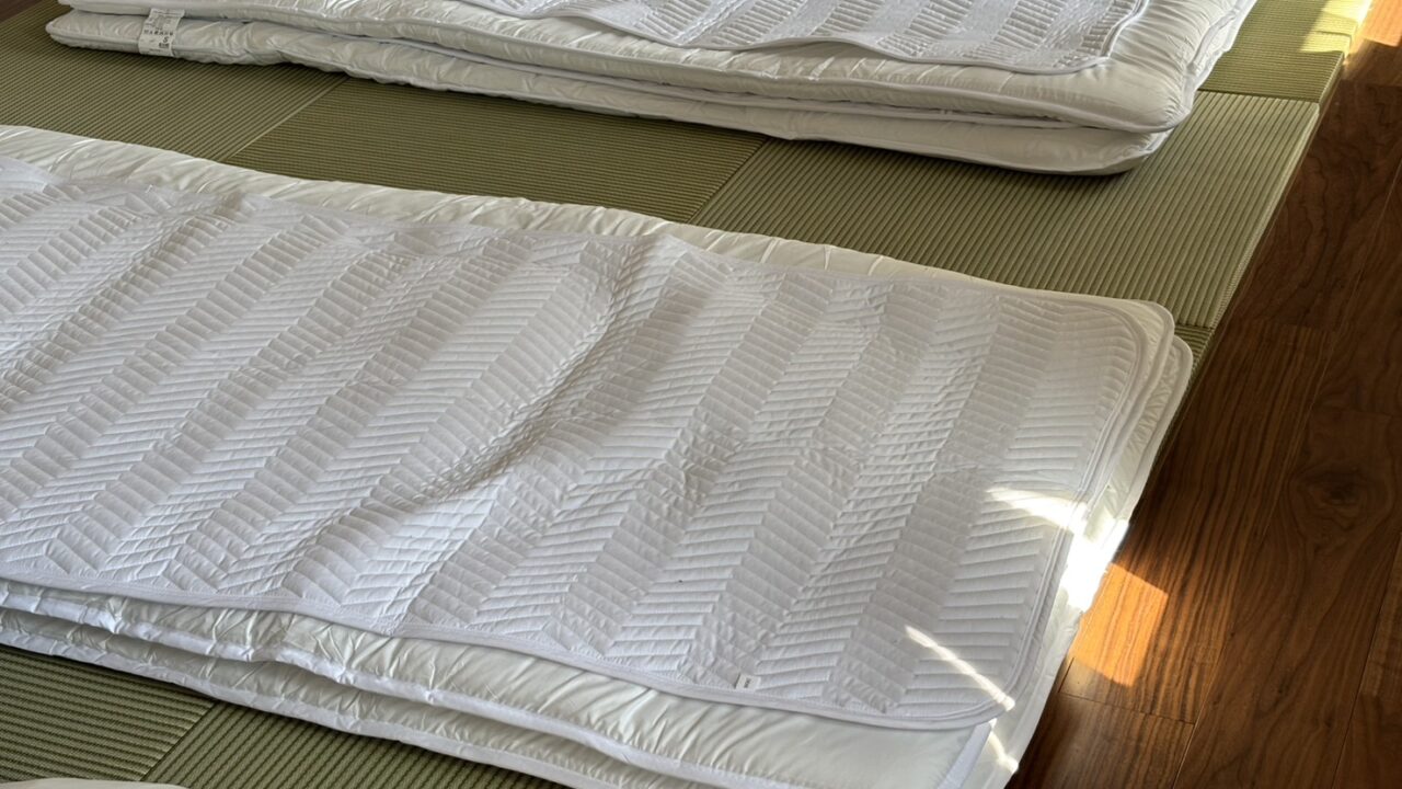 営業再開1ヶ月経過、感想と現状は「掃除が大変」の一言。フローリングにしたらホコリや髪の毛が目立つのは想定通り、それを誤魔化してしまうカーペットの不潔さよりは清潔を提供してる安心感があります。想定外だったのが布団の使われ方、写真は外国からのお客様がチェックアウトした部屋を撮影。この利用パターンを多く目にしてまして、畳に布団は外国のお客様には固すぎるのかと、厚めのを採用したんですが、どうもダメそう。マットレスを用意したらクローゼットの制限から布団を4つ提供するのは無理になるし、さてどうしたものか思案中。