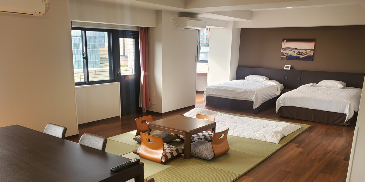 2025年10月1日に各階を1部屋して全9室(2階は45㎡・3階から10階は80㎡)でリニューアルオープン。キッチンと洗濯機を備え付け、最大6人まで泊まれる滞在型のホテルに生まれ変わりました。